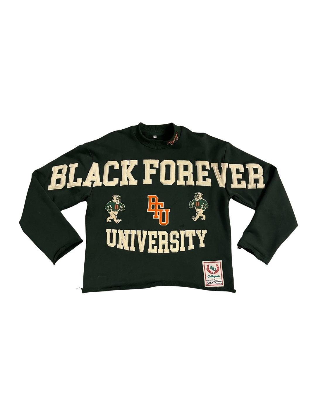 The Black Forever University Raw Hem Crewneck Sweatshirt in Green is a heavyweight streetwear essential inspired by the BLK college experience. Designed with premium craftsmanship and cultural storytelling, this crewneck represents legacy, pride, and the shared memories that shaped us.